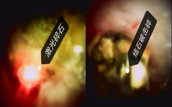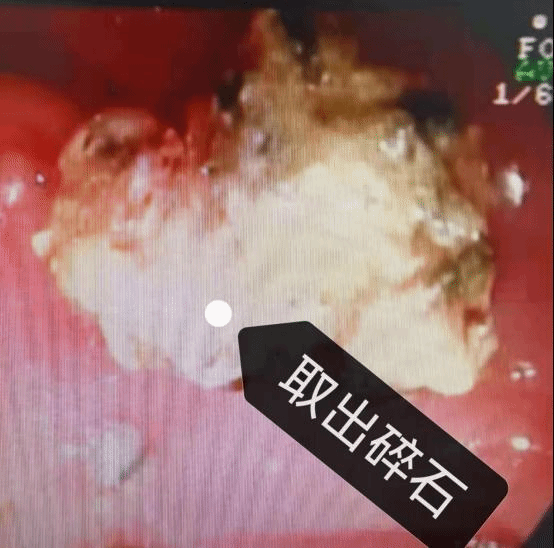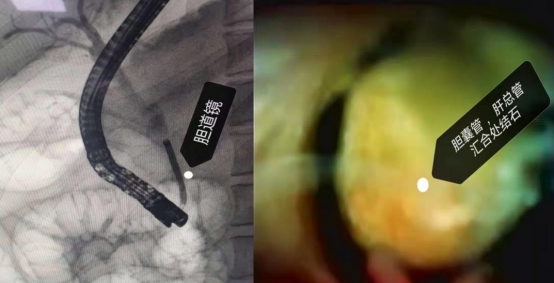 手术当日由史立军团队在消化内镜中心开展,成功插管后插入胆道镜(SpyGlass)可见胆管黏膜充血、水肿,结石位于胆囊管、肝总管汇合处,完全堵塞胆囊管。经数字胆道镜插入激光光纤进行碎石后,用网篮将碎石取净,术后患者无并发症,无创伤。