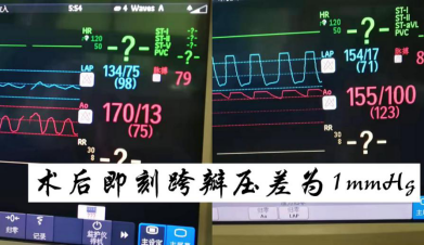 入院后进行了全面检查。经过胸心脏超声检查发现,老人心脏三个瓣膜均有严重病变,并且心功能差,双房增大,主动脉瓣口流速5.32m/s,峰值压差112mmHg,平均压差54.9mmHg,而二尖瓣瓣口流速2.82m/s,压差31mmHg。最终诊断为:风心病,联合瓣膜病,主动脉瓣重度狭窄伴轻度返流,二尖瓣重度狭窄伴轻度返流,三尖瓣中-重度反流,严重影响心脏和全身血流灌注。可以把二尖瓣和主动脉瓣看做一个房子的正门和后门,正常情况人们可正常进出,一旦门坏了,人就进出不了门,因此血液不流通,生命就受到威胁。