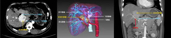 术前影像学、3D立体成像显示,尾状叶肿瘤包绕在肝部大血管中