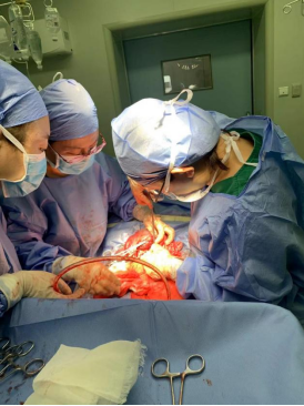 庄如锦带领队员在查房过程中发现,有一位孕37周、前置胎盘、妊娠期糖尿病、瘢痕子宫的产妇。因为产妇已经孕足月,而且前置胎盘,出现了反复出血的情况,情况比较危急,需要尽快进行剖宫产终止妊娠。对产妇情况进行全面评估后,庄如锦、白晓絮、卢杨、闻彩妤在当地医护的配合下,立即为产妇进行剖宫产。