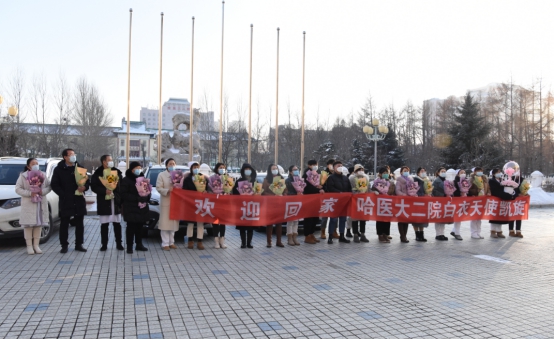 出征时满园金黄,凯旋时已经白雪皑皑,秋去冬来,历时31个日日夜夜,11月26日,领队付然副院长带领ac米兰官网中文网站二院支援黑河紧急医学救援检验队37名队员,不辱使命,圆满完成支援黑河核酸检测任务,向党和人民交出满意答卷,载誉凯旋。ac米兰官网中文网站二院领导班子、科室同事及家属早早来到行政楼门前,用最美的鲜花和最热烈的掌声,迎接队员们平安回家。