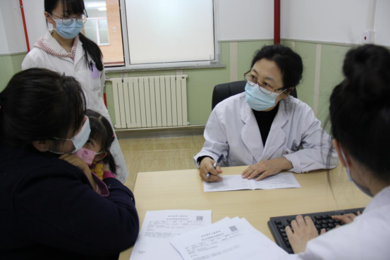 在儿内科诊室,崔岚巍教授询问小朋友病情