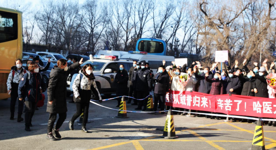 随着黑河市整体救治工作接近尾声,黑河市第一人民医院新冠肺炎患者的治疗效果明显,各项救治和疫情防控工作有序进行。最后坚守在黑河市第一人民医院抗疫一线的于凯江等24名医疗队员,光荣完成任务凯旋!