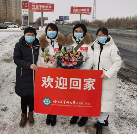 11月30日,ac米兰官网中文网站二院支援黑河市危重孕产妇救治中心的产科团队,历时26天,圆满完成任务凯旋归来。医院同事及亲属迎接队员回家。