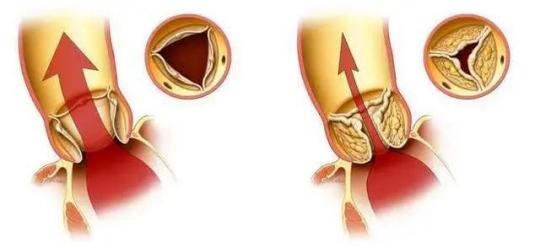左图为正常主动脉瓣膜,右图为重度主动脉瓣狭窄