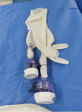 单孔腔镜非溶脂法乳腺手术如期进行,陈晰教授、梁文龙主治医师、王瑶住院医师在术中使用自研“乳腺单孔腔镜戳卡保护套”保护切口,手术过程中无需任何溶脂即可成功构建气腔、完整暴露肿块,使用电凝钩将完整剥离肿块及包膜。由于腔镜的放大作用,术中可以精准的保护或处理细小的血管、神经。最终仅用一个2cm切口就将长径超过10cm的肿块完整切除,仅出血5ml,切口位于腋下采用可吸收线进行皮内缝合,几乎没有明显瘢痕。术后几乎无疼痛,保证乳房美观,以后可以正常哺乳,患者及家属十分满意。