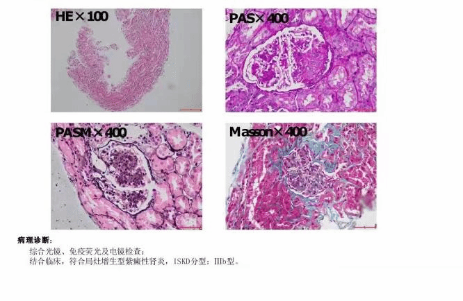 群力小儿内科与手术室和彩超室积极沟通联系并做好充足的准备。在静脉麻醉下,腹部超声科主任杨秀华教授,姜脉涛主治医师及小儿内科团队联合为患儿行彩超引导下的肾脏穿刺活检。仅用半小时,便成功完成儿童全麻下肾脏穿刺活检术。活检病理报告提示符合局灶增生型紫癜性肾炎,ISKD分型为Ⅲb型。