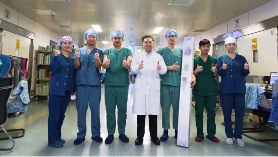 麻醉科曾宪章副教授(左1)、心内科张东会医生(右2)、陈涛医生(左2)和杨光医生(右1)共同完成手术