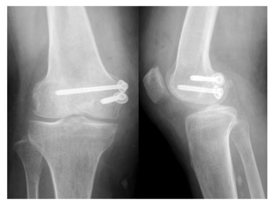 术后正侧位X线片可见,骨折对位对线良好,达到解剖复位,内固物位置良好。