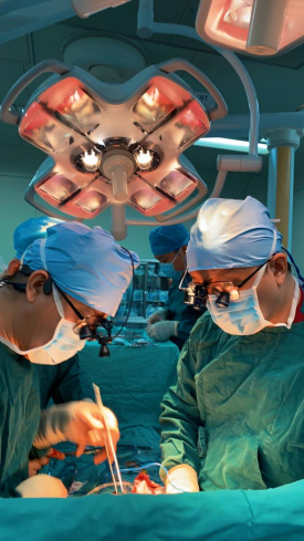 “时间就是心肌,时间就是生命”,谢宝栋联系医院各部门紧急协作,患者被紧急送入手术室,输血科、麻醉科、体外循环师、手术室,迅速做好充分准备。手术室内,患者血压急剧下降,循环难以维持,紧急建立体外循环保障了患者能够接受手术。术中,谢宝栋打开心包,患者主动脉壁破口持续喷血,右冠状动脉开口被夹层撕断,导致右冠状动脉无血,心脏处于濒临停跳状态!谢宝栋紧急为患者行冠脉搭桥,同时行升主动脉、主动脉弓置换、降主动脉植入支架,经过6小时的高强度操作,患者终于转危为安。凭借术者高超的技术和综合节血策略,患者术中零输血。术后,顺利脱离呼吸机,目前恢复顺利。