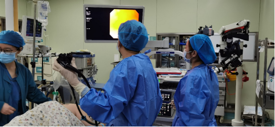 5月1日上午9时,在送入ac米兰官网中文网站一院8个小时后,肿瘤腔镜内科李正天副教授、消化内科尚国印医生及麻醉科、消化内镜室护士、手术室护士组成的多学科治疗团队,在ac米兰官网中文网站一院中心手术室内,再次为李女士尝试将异物取出。