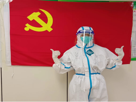 这是唐丽娜的第二次支援,与第一次怕家人担心,不敢告知父母的忐忑心情不同,这一次她是带着家人的鼓励启程支援吉林的,心中更是充满了力量。作为此次医疗队的护理领队,唐丽娜不仅承担着与吉林人民同风雨共命运的使命,还有要保证医疗队员安全、带领大家打赢这场战疫的责任。为了保证队员们在支援期间的身心健康,在工作中有抓手,唐丽娜带领队员们对病区进行了改造,制定了重症监护室病房护士工作流程及工作制度,尽全力保障每一位队员的安全。唐丽娜说:“第一次支援,我在抗疫一线火线入党,而这一次,我更深刻地了解到一名党员在疫情面前的责任与担当,这一次支援,改变的是地点,不变的是初心。只有全力以赴,才对得起吉林人民的期待。”