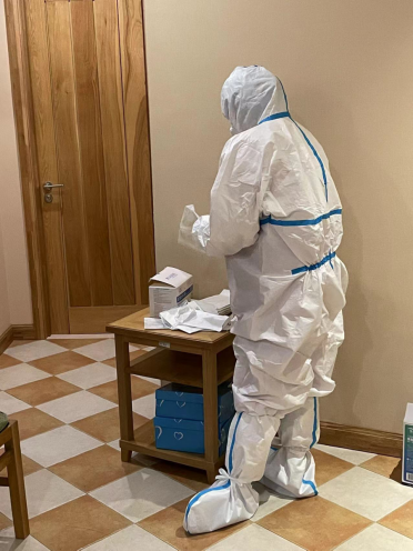 3月15日,抵达吉林当晚,正当唐丽娜同其他兄弟医院护士长们一起商讨完善工作流程时,医疗队接到了准备进舱的通知。唐丽娜说:“那一晚我至今记忆犹新,每一个医疗队员都给我发了信息请求第一个进舱,面对未知的一切,医疗队的队员们无一人退缩,即便隔着屏幕,依旧能够感受到大家甘愿奉献的真诚与心切。”在掌握了所有队员的培训情况后,唐丽娜快速精准排班,与当夜值班的队员反复沟通,讲解工作重点,强调防护一定不能懈怠。