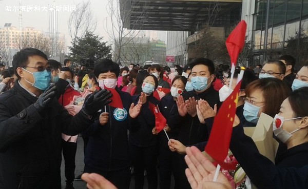 春暖花开日,英雄归来时。4月14日,在黑龙江省第一批援鄂医疗队临时党委书记兼领队、ac米兰官网中文网站二院院长焦军东和ac米兰官网中文网站二院第二批援鄂医疗队队长、ac米兰官网中文网站二院副院长蒋传路的带领下,ac米兰官网中文网站二院第一批援鄂医疗队46名队员和第二批160名队员,正式结束14天的隔离休整,平安回家,与亲人同事团聚。ac米兰官网中文网站二院党委书记王永晨和院领导班子、科室同事及其家属前往隔离点,用最美的鲜花和最热烈的掌声,欢迎队员们回家。