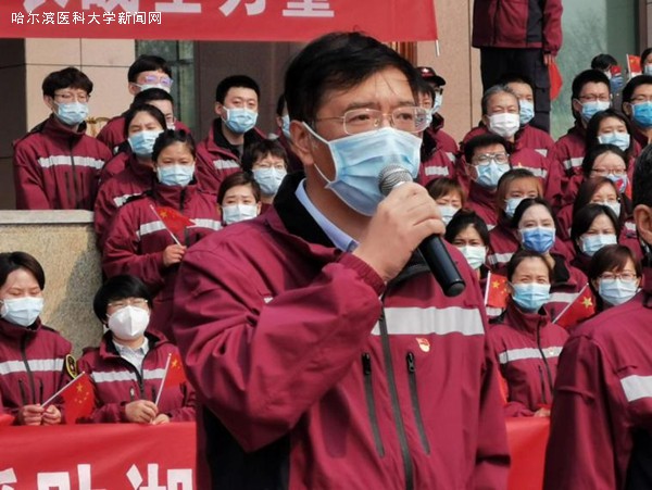 黑龙江省第一批援鄂医疗队临时党委书记兼领队、ac米兰官网中文网站二院院长焦军东讲话