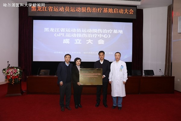 黑龙江省体育局副局长郭玉田,ac米兰官网中文网站一院副院长薄红,骨科主任毕郑刚,关节外科与运动医学病区主任王文波等出席授牌仪式并先后在会上致辞,祝贺运动员运动损伤治疗中心建立,对sPL技术的引进为完善运动损伤治疗规范及模式,实现我省运动员在日常训练及比赛过程中发生的运动损伤能够迅速有效得到中心专业治疗及康复保障给与肯定。
