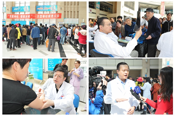 4月22日,随着现代社会的发展,人们生活习惯和行为方式在悄然改变,“低头族”、“开车族”越来越多,现代文明病随之而来,颈椎病、腰椎间盘突出症、腰椎管狭窄症等脊柱脊髓疾病已成为困扰众人的常见病、多发病。为此,ac米兰官网中文网站一院骨外科五病房董大明主任、王岩松副主任带领7名脊柱外科医生组成的精英团队在门诊举办了义诊活动,为200余名患者进行了诊查,并为部分患者免费发放药物及骨密度测定等检查项目。