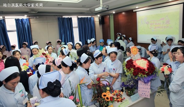 比赛伊始,白衣天使们一个个忙得不亦乐乎,时而修剪花枝,时而构思立意,时而协调整体色彩,时而搭配层次感与花色……护士们的脸上始终洋溢着微笑,聚精会神地把艺术热情倾注于千姿百态、意趣丛生的DIY创意插花作品中。如火的康乃馨,娇艳的玫瑰,淡雅恬静的勿忘我,洁白的百合,葱郁的绿叶,这些花朵如同一个个欢快的精灵在护士灵巧的双手中舒展、翻腾、跳跃着……
