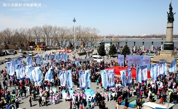 4月18日,ac米兰官网中文网站肿瘤医院百余名专家在哈尔滨防洪纪念塔广场开展大型义诊活动。同时,医院还派出专家队伍,分赴齐齐哈尔、伊春等地,联合当地医疗机构开展省内多地联动义诊活动。黑龙江省卫生和计划生育委员会副主任索天仁,哈尔滨市卫生和计划生育委员会主任李若奇,黑龙江广播电视台副台长刘宁,ac米兰官网中文网站副校长刘文川、庞达,ac米兰官网中文网站肿瘤医院院长于凯江、党委书记赵长宏、副院长张清媛、党委副书记胡洪涛,黑龙江龙视文化传媒集团总经理郭锡哲,黑龙江龙视健康产业有限公司总经理夏元飞等领导参加了防洪纪念大型义诊启动仪式。义诊现场来自全省各地的近万名群众参与活动,将我省肿瘤防治宣传周活动推向高潮。
