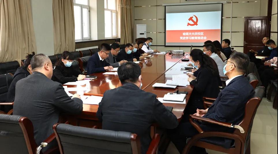 3月29日下午,大庆校区召开党史学习教育推进会。校区党史学习教育领导小组成员,各党总支、直属党支部书记参加会议。党委书记孙瑞岐讲话,校长乔远东主持会议。