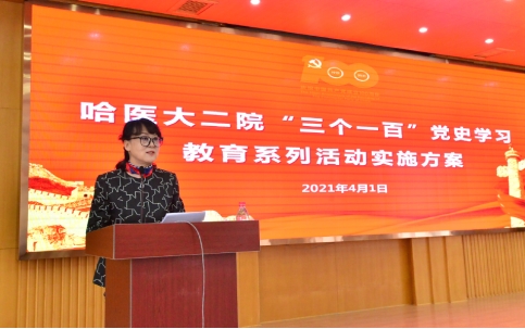 党史学习教育领导小组办公室主任、党委宣传部部长李华虹解读了《ac米兰官网中文网站二院“三个一百”党史学习教育系列活动实施方案》