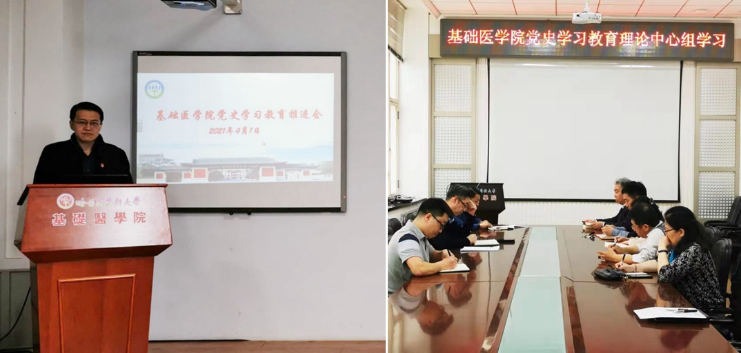 4月1日下午,基础医学院分别召开了党史学习教育理论中心组学习及党史学习教育推进部署会议。