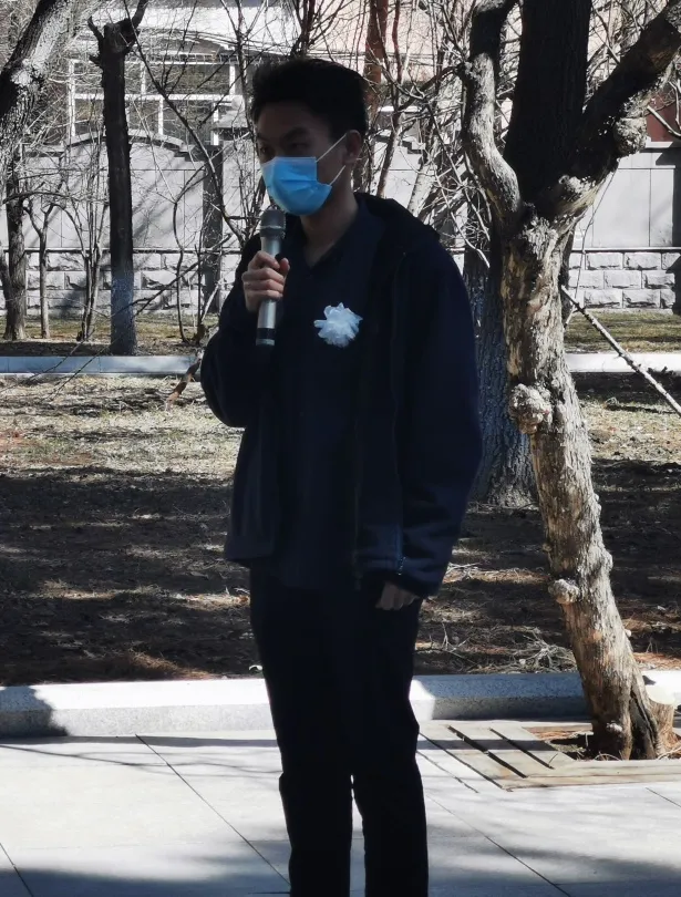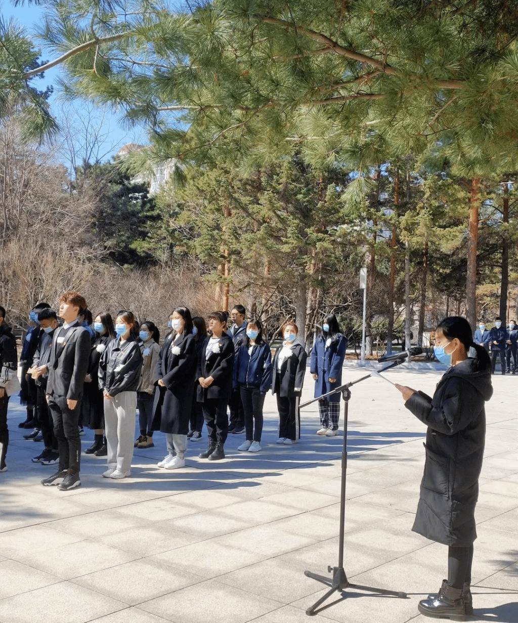 祭扫结束后,全体学子齐唱国歌。本科党员代表孙丽蕊在发言中说,作为中共预备党员,要牢记使命,用真才实干回馈祖国与社会。用先烈不怕牺牲,敢为人先的精神激励自己,无愧于自己党员的身份。
