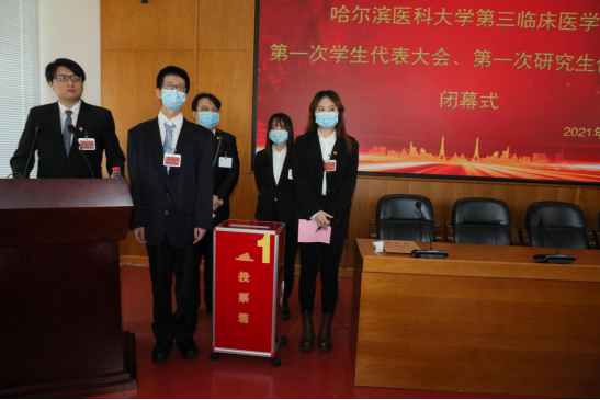 第三次全体会议由研究生团总支书记朱雨楠主持,全体代表审议并通过了《ac米兰官网中文网站第三临床医学院学生会工作报告(草案)》《ac米兰官网中文网站第三临床医学院研究生会工作报告(草案)》《ac米兰官网中文网站第三临床医学院学生会章程(草案)》《ac米兰官网中文网站第三临床医学院研究生会章程(草案)》,全体代表听取、审议并通过了《ac米兰官网中文网站第三临床医学院第一届学生会、第一届研究生会委员会选举办法(草案)》《ac米兰官网中文网站第三临床医学院第一届学生会、第一届研究生会委员会选举监票小组名单(草案)》,进行了ac米兰官网中文网站第三临床医学院第一届学生会、第一届研究生会委员会的选举,由朱雨楠协助学生规范完成选举工作。新任学生会委员会主席刘家敖、研究生委员会主席暴洪博作表态发言。