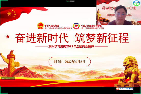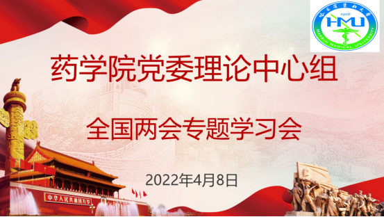 为深入学习贯彻全国两会精神,激励党员干部不忘初心、牢记使命、勇于担当、尽职尽责,4月8日下午,药学院党委理论中心组专题学习全国两会精神,紧跟时代前进脉络,把贯彻落实两会精神与学院重点工作紧密结合起来,有效激发干部履职担当的工作热情。