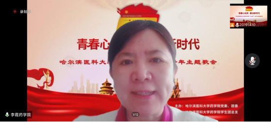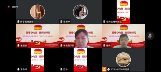 跨越百年,青春不朽,歌唱节目精彩继续。药学院以团支部为单位选送了8首精彩曲目,表演形式有独唱、合唱、诗朗诵等,用多种形式传递青春正能量。一首《孤勇者》歌颂了无数为中华民族解放抛头颅洒热血的无名烈士先辈们;《隐形的翅膀》鼓励青少年们世上无难事,只要敢登攀;《你曾是少年》赋予了青年一代勇于拼搏、敢爱敢恨的勇气;《微微》给予了大家遇到磕绊跌倒后再坚强站起来的勇气;《向阳》塑造了时代未来的青年之声,未来的我们将乘风展翅,踏浪前行;《万疆》音律婉转,词曲悠荡,唱出了每一个中国人心中深深的民族自豪感;《我的祖国》唱响后,经典的旋律回荡耳畔,中华大地的繁荣盛景映入眼帘,每一个药院学子都愿为祖国效力,愿意去拼搏、去奋斗、去挥洒汗水、去贡献一份赤城和力量!节目最后,全体同学打开摄像头在云端齐唱《中国共青团团歌》,将活动现场气氛推向高潮。