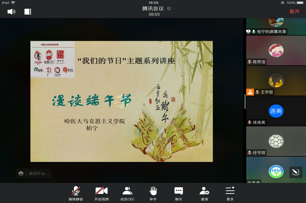 为贯彻落实中办、国办《关于实施中华优秀传统文化传承发展工程的意见》精神和中央文明办关于组织开展传统节日文化活动的工作部署,积极响应省文明办开展的2022年“我们的节日”主题系列活动,进一步推动中华优秀传统文化的传承发展,持续推进中国传统节日振兴工程,5月31日晚,学院邀请柏宁教授在线上作题为“漫谈端午节”的专题讲座,马克思主义学院全体师生参加本次讲座,讲座由副院长李中华主持。