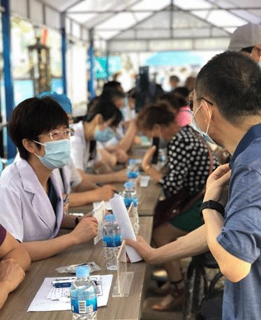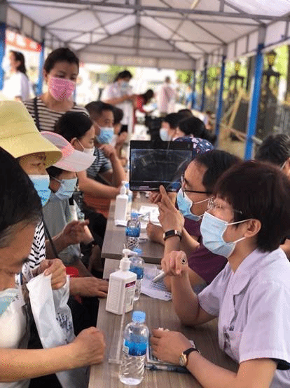 由于很多市民提前来到义诊现场,志愿者们耐心询问患者的病情,指导患者到相关科室就诊,为候诊群众按序发放义诊号牌,并组织大家排队有序就诊。在严格执行疫情防控相关措施情况下,义诊活动有序进行。