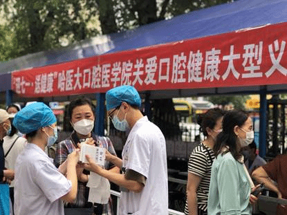 为迎接“七·一”党的生日,以实际行动庆祝伟大的中国共产党成立101周年,7月1日上午,口腔医学院党委在南岗院区、群力院区同时举行两场大型义诊惠民活动。来自口腔颌面外科、口腔正畸科、口腔修复科、牙体牙髓病科、儿童口腔科、牙周病科、口腔预保科、语音语障治疗科的10名专家、6名大学生志愿者,为200余名市民进行免费的口腔健康检查、知识宣教、科普资料发放等服务。义诊专家均为中共党员,他们践行为人民服务的宗旨,以优质、高效的医疗服务守护百姓健康,以实际行动向党的生日献礼。