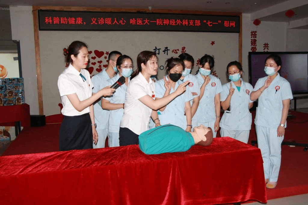 为庆祝中国共产党建党101周年,弘扬新时代医护人员“人民至上、生命至上”的职业精神,深入推进党史学习教育,继承党的光荣传统,践行党的初心使命,表达归国留学人员为祖国建设贡献自己力量的愿望。6月29日下午,专家团队一行来到博能儿童康复中心。史怀璋教授代表神经外科党支部向儿童康复中心赠送了礼物。汪立刚教授进行了《小儿脑积水、癫痫、吞咽困难等疾病的诊断和医疗处理》讲座,刘博和王浩然护士进行了《CPR标准操作》以及《海姆立克急救法》的演示和讲解。专家们在活动现场进行义诊,对孩子家长和院方进行疑难问题现场解答,观看了小朋友们精心准备的表演。