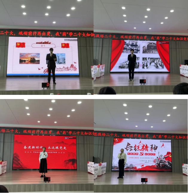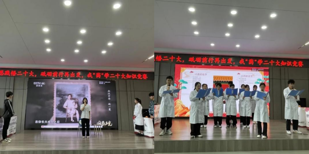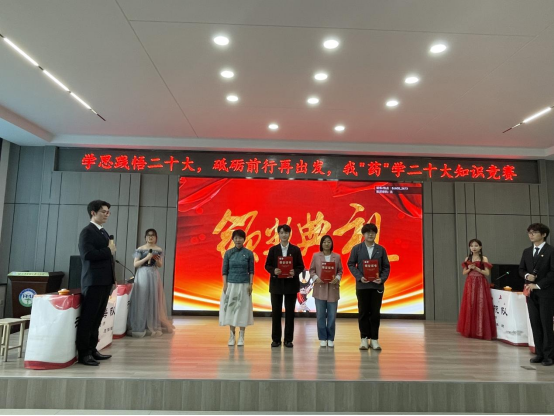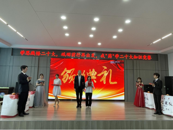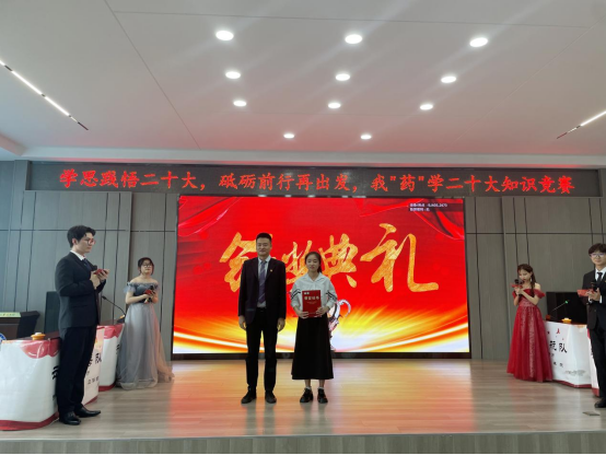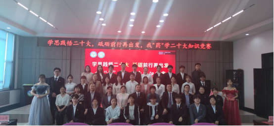 为深入开展习近平新时代中国特色社会主义思想主题教育,贯彻落实党的二十大精神。5月13日下午,药学院党委在学校星联学术报告厅举办“学思践悟二十大,砥砺前行再出发”我“药”学二十大知识竞赛。药学院院长张勇、校党委宣传部副部长王晓云、校党委学生工作部副部长赵春辉、药学院党委副书记李霞、药学院副院长白云龙、药学院副处级辅导员兼学生党总支书记姜大巍以及各职工党支部书记担任大赛评委。