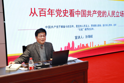 孙瑞岐结合自身学习与思考,从“人民立场是马克思主义政党的根本政治立场、紧紧依靠人民是中国共产党不断从胜利走向胜利的力量源泉、一切为了人民是中国共产党百年不懈奋斗的目标”三个方面,系统讲授了习近平新时代中国特色社会主义思想的精髓——人民至上的深刻要义和时代内涵,脉络清晰、逻辑严谨、鼓舞人心、振奋精神。
