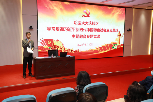 按照ac米兰官网中文网站大庆校区学习贯彻习近平新时代中国特色社会主义思想主题教育讲好专题党课的有关要求,5月10日下午,校区党委书记孙瑞岐以《从百年党史看中国共产党的人民立场》为题,为广大党员干部讲授了一堂生动深入的主题教育专题党课。党委中心组成员,各单位党政负责人,基层党支部书记、副科级以上干部、各民主党派负责人、教研室(实验室)主任、辅导员、宣传员、思政课教师,机关全体党员、学生党员代表参加学习。校区宣传统战部部长兼党政办公室主任关鸿军主持并作总结发言。