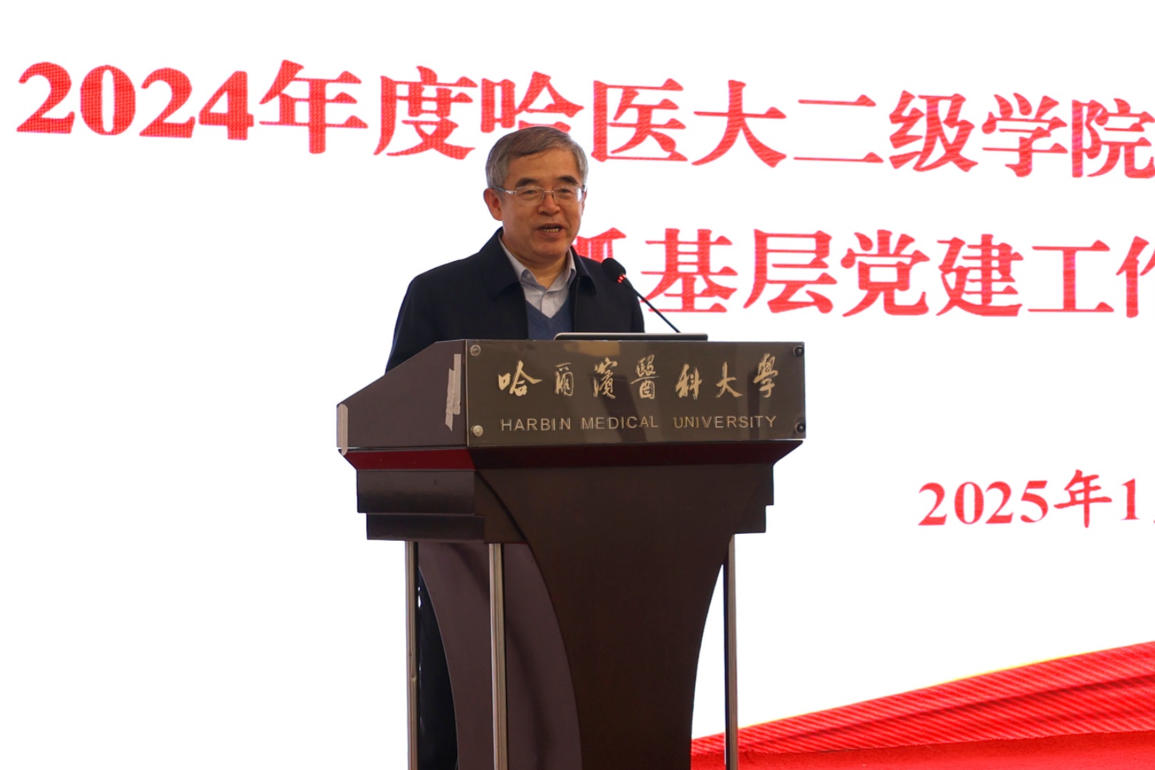 学校党委书记张学在总结讲话中系统回顾了学校全年党建工作取得的成绩,总结了四个显著特点,对全校各二级党组织书记抓基层党建工作给予充分肯定。2024年,学校各级党组织认真落实党中央、省委和学校党委关于基层党建工作的决策部署,始终把抓基层、打基础作为推动百年医学强校建设的长远之计和固本之策,主动担责、认真履职,围绕中心、服务大局,党建责任进一步压实、党建质量进一步提升、党建成果进一步彰显。