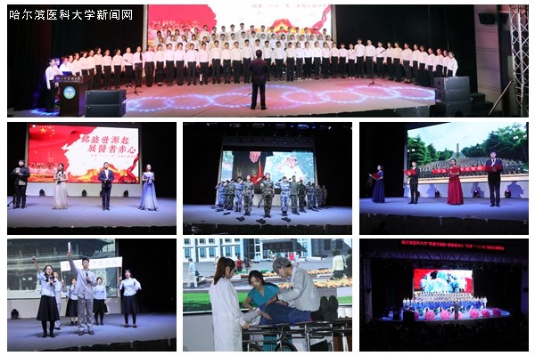 “滔滔江河水,淹不尽浩浩中华魂;巍巍昆仑山,锁不住阵阵中华风;笙笙边疆曲,唱不尽幽幽中华情;洋洋报国诗,颂不完雄雄中华梦。”伴随着主持人庄严的话语,8日晚“纪念‘一二·九’主题汇报演出”正式拉开帷幕。嘹亮的歌喉、动感的舞姿、幽默的话剧、庄严的朗诵,为全校师生呈现了一场既充满浓浓青春气息,又包含对革命精神传承和发扬的一场精彩绝伦的视听盛宴。《盛世源起》中象征着中国魂的凤凰,在绝境中涅槃重生,依然展翅翱翔;大合唱《在灿烂的阳光下》唱出了中国对于自由与美好未来的追求;《革命的开路人》情景剧中,那一声“祖国母亲啊,你的儿女不能够再爱你了,我们再也不能爱你了”,更是道出了当时社会的黑暗,人民的痛不欲生;《缅怀先烈,淬炼芳华》情景剧中,那一声声“母亲”,那一声声“祖国”喊出了中华儿女对祖国母亲的爱恋,带领着我们缅怀先辈精神,引领着我们共创祖国芳华;《医者赤心》情景剧,展示了青年学生传承了红色基因,让优秀的华夏精神点亮医学生道路上的光芒;如果说《新时代的力量》展现了中国的强军梦,那么《中华脊梁》真实展现了中国人骨子里的那一股不服输,不低头的豪气;当《我和我的祖国》旋律响起,将晚会推向了高潮,歌声婉转悠扬,充满力量,跌宕起伏,在场观众无不热泪盈眶,它唱出了对伟大祖国的衷心依恋和真诚歌颂;一首首爱国曲余音浩荡,让灿烂的民族文化在青年的血脉中流淌;一幕幕爱国剧气壮山河,让优秀的华夏精神点亮青年前行的道路。
