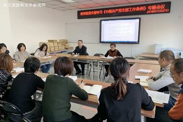 会上,孙建平书记以及李霞副书记分别就2018年10月28日新修订的《中国共产党支部工作条例(试行)》(简称《条例》)文件具体内容为大家进行了逐条解读分析。《条例》中对于党支部组织人员设置、基本任务以及需要开展的党支部活动等方面做出了明确分工和具体要求。孙书记强调,药学院一直以来坚守“政治坚定、技术优良”的红色使命,矢志不渝,不改初心。本次党中央下发的《中国共产党支部工作条例(试行)》为全面贯彻从严治党要求、全面提升党支部组织力以及为今后学院党组织进一步健全和发展提供了坚实基础和理论保障。他号召各党支部书记要群策群力,团结带领好学院全体党员认真落实条例细则,严格遵守党的纪律章程,努力打造药学院党建工作新风气、新局面,充分发挥党支部战斗堡垒作用。