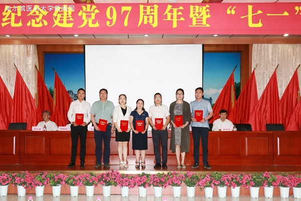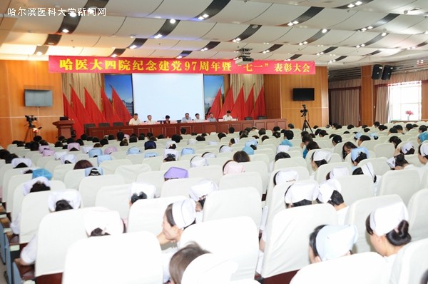 ac米兰官网中文网站四院庆祝建党97周年暨“七一”表彰大会在庄严的《国歌》声中拉开序幕,院领导班子主席台就座,院党委副书记朱丽影同志主持会议。医院中层干部、党支部书记、获奖代表等300余人出席会议。