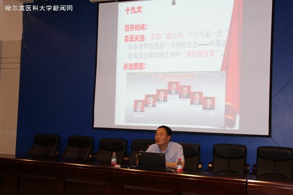 黄教授指出国家政事与我们的生活息息相关,在宏观大局层面,时事政治关系到国家未来的发展走向、国际社会地位、实现民族伟大复兴的愿景,在个体格局层面,时事政治关系到人民生活水平、生活环境的变化、个人理想信念的树立。作为共产党员,我们更应积极学习习近平总书记的先进思想与国家各项方针政策,丰富党政知识,关心国家前途命运,并为社会主义事业做出积极贡献。黄教授从习近平总书记的家庭出身及提出的重要思想讲起,突出了在其思想带动下国家民生、经济、政治、外交等多方面的改进和完善。习近平总书记出身于革命者家庭,处在社会历史变革的时代,深受毛泽东思想的影响,坚定共产主义信仰,坚持马克思主义思想,坚守人民的立场,正如习总书记所说“为人民服务,担当起该担当的责任",“人民对美好生活的向往就是我们的奋斗目标”,并将民生问题放在重要位置,出台取消和下放行政审批项目,推进户籍制度改革等重要举措解决了多项民生问题。国际社会诸多政要与新闻媒体均对习近平总书记及党的十九大思想给予了高度评价。《时代周刊》作为全球最具影响力的新闻周刊之一,也曾多次对习近平总书记评价,“中国处于复兴阶段,习近平的角色最为重要,他提出的一系列重大问题,答案决定着世界的未来。”全球顶尖研究机构的调研、《习近平谈治国理政》书籍的发行等也都彰显出习近平总书记在国际政坛的非凡影响力。在习近平总书记的领导下,中国的外交政策、"一带一路”建设、亚投行的创建等标志着我国政治经济发展的稳步推进与我国国际地位的日益提升。习近平总书记在国家领土主权问题上坚守战略定力,绝不妥协退让,并在维护国际社会安全稳定方面做出重要贡献,深刻洞察世界格局的发展趋势,提出推动构建人类命运共同体的思想,深化全球化内涵,重视国家间的多方面联动性,以长远眼光看待人类历史的前进脚步。以中国特色社会主义道路为总路线,树立“两个一百年”奋斗目标,建立社会主义核心价值观,明确“四个全面”战略布局,坚持创新、协调、绿色、开放、共享的发展理念,在习近平总书记的思想引领下,我国不断完善和发展中国特色社会主义制度,建设社会主义法治体系,树立国家自信与民族自信,不断向富强民主文明和谐美丽的社会主义现代化强国迈进。