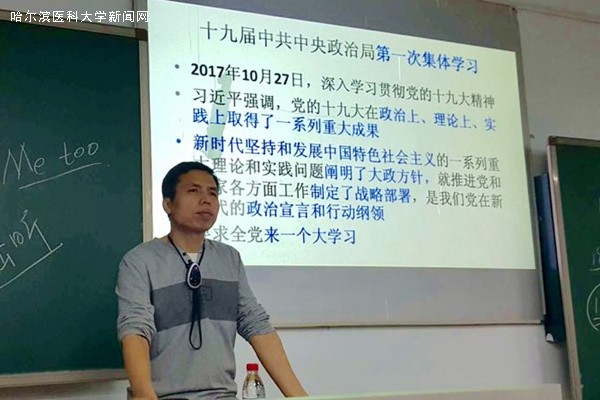 4月24日下午18:00时,基础医学院分党校第四期第三次党课在成教学院一号大教室举行。马克思主义学院任守双老师为学员们讲授了以“行动方略基于形势判断”为主题的党课,旨在加强学员们对于党的十九大精神以及十三届全国人民代表大会的理解和认识。基础医学院职工、研究生和本科生党校学员参加了本次党课。