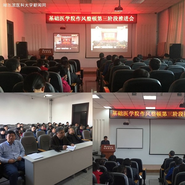 根据学校党委的统一部署,基础医学院党委于10月25日在基础医学院三楼演讲厅召开“以案为鉴,优化作风”专题警示教育暨作风整顿第三阶段推进会。学院领导班子成员、各教研室主任、党支部书记、机关全体同志以及全体辅导员参加了此次会议。