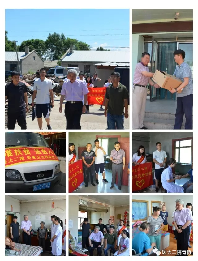 清晨6时30分,医疗服务队准时集合,将筹备好的药品、物资装车,经历1个多小时的车程到达双城市周家镇中心卫生院,受到了当地医生和患者的热烈欢迎与大力支持。活动当天,临床专家与青年志愿者们,义务接诊300余名患者,免费发放药品及物资5000余元,同时汽车医院也同步完成检查工作,帮助当地居民解决健康问题。另外,在党委副书记王培军和学生党总支书记商孝来的带领下,青年志愿者们以及医护人员深入贫困家庭进行慰问,并为其赠送生活物资及医疗用品,真正做到“精准扶贫,送医入户”,落实服务大众,关爱人民的医务人员心声。