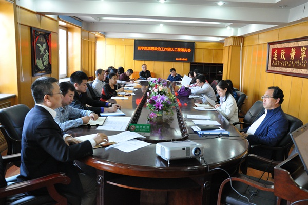 5月9日下午,药学院党委召开了思想政治工作四大工程落实会议。学院党政班子、各支部书记、各教研室主任以及机关所有干部参加了会议。会议由学院党委书记孙建平同志主持。会议的主要内容就学校党委思想政治工作四大工程的相关工作方案进行了部署和落实。