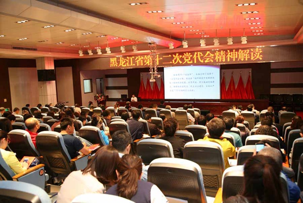 王华教授作题为《黑龙江省第十二次党代会精神解读》的专题报告。她分别从党代会召开的重大意义、总结的成就经验、确定的奋斗目标及部署的各项任务等四个方面,深入细致地对报告的精髓、核心内容进行了解读,特别是围绕奋力走出龙江全面振兴发展新路子这一省党代会主题,从经济建设、政治建设、文化建设、社会建设、生态文明建设、党的建设等方面分析了党代会部署的各项战略任务,帮助大家进一步深刻领悟省第十二次党代会精神。