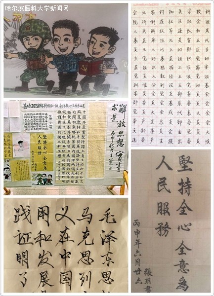 学习活动以党章书法抄写比赛及“新时期优秀党员形象”手绘海报设计大赛的形式开展,同学们都积极参与到活动中,用淡雅的墨香,缤纷的色彩,以艺术的形式诠释出了党章内容的深刻内涵及自己心目中的优秀党员形象。书法作品或清新飘逸或气势磅礴,或刚柔并济或力透纸背,各自表达了对党章的无限敬意。海报作品更是优品迭出,无论是勇攀高峰的青年还是陆海空三军飒爽的英姿,无一不体现了青年一代的蓬勃朝气与赤字之心。比赛评选出一等奖1名、二等奖3名、三等奖5名,优秀作品张贴于五号学生公寓一楼大厅展出,展板前人头攒动,精美的书法和海报作品吸引了同学们纷纷驻足观看。同学们或饶有兴致地对着书法作品细心品评,或三五成群地在海报作品前讨论交流,在欣赏作品的同时也加深了对于本次“两学一做”专项学习活动的认识。