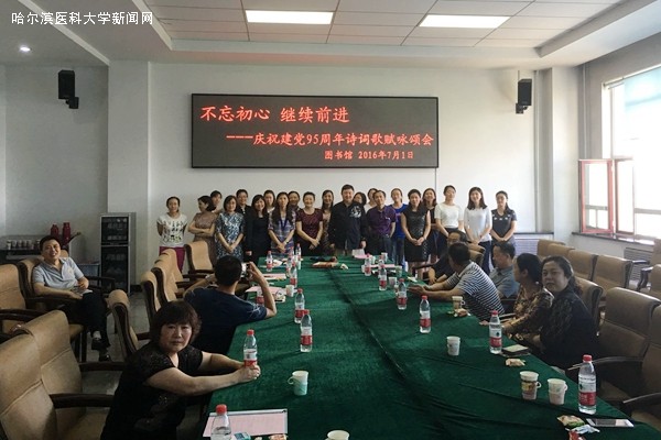 7月1日,图书馆全体工作人员在四楼会议室举办了“不忘初心,继续前进,庆祝建党95周年诗词歌赋咏诵会”,以诗朗诵和唱红歌等形式,表达对中国共产党光辉历史和丰功伟绩的赞扬和歌颂。