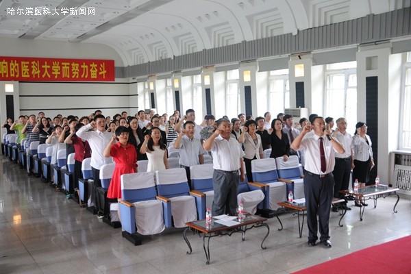 在建党95周年来临之际,基础医学院于6月29日下午在主楼三楼演讲厅隆重召开庆祝建党95周年表彰先优暨新党员入党宣誓大会。基础医学院班子成员出席大会,大会由学院党委副书记李辉同志主持。学院全体教职工参加大会。